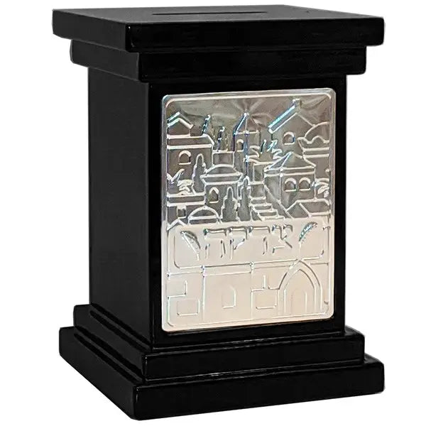 Classic Wooden Tzedakah Box With Plaque, black.